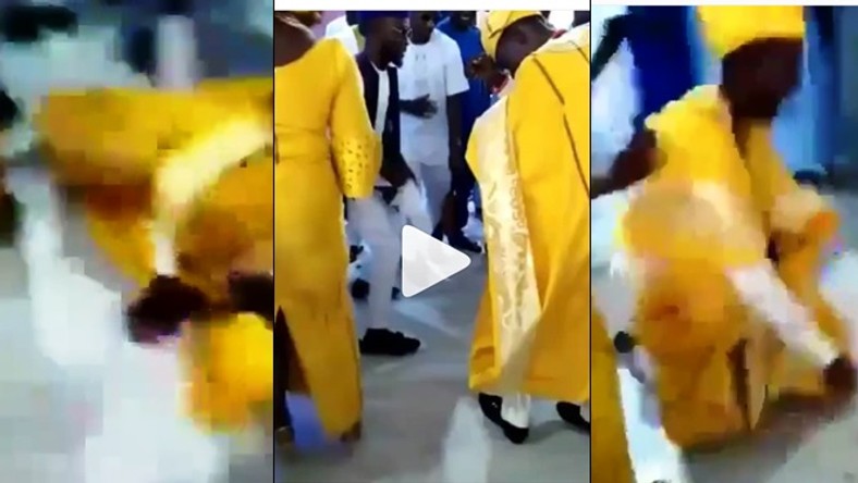 A groom who got overexcited on his wedding day embarrassed himself as he fell during a ‘crazy’ dance popularly known as Zanku legwork.